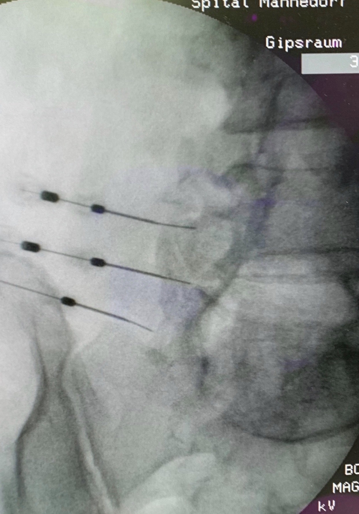 Bei der interventionellen Wirbelsäulentherapie wird mit Hilfe der Bildgebung eine Injektionsnadel punktgenau platziert. Der Therapieeffekt beruht auf der entzündungshemmenden und abschwellenden Wirkung der injizierten Medikamente. Nerven schwellen ab und gewinnen mehr Platz. Ein Zusatzeffekt ist die vorübergehende Betäubung der Nerven und somit eine Schmerzlinderung.